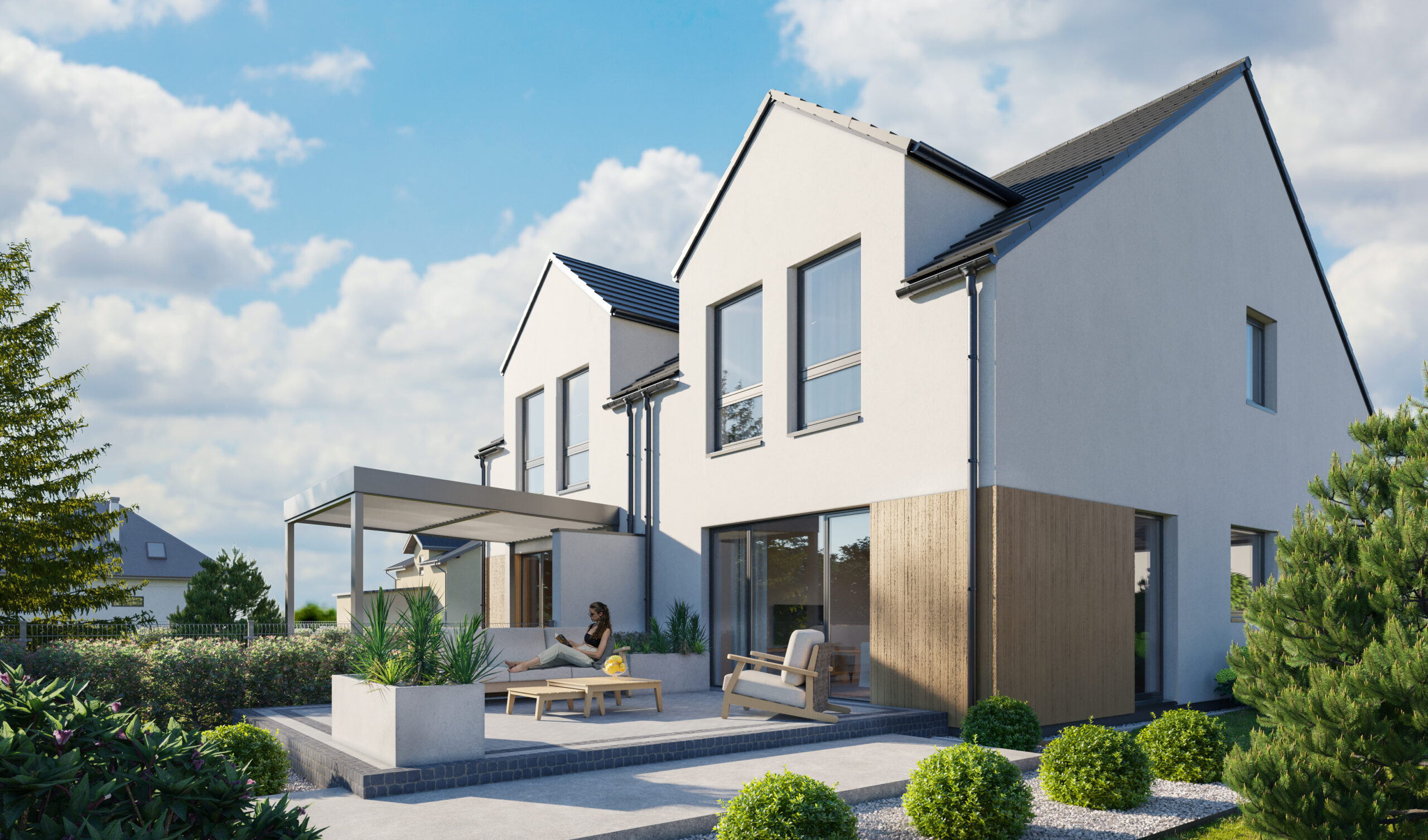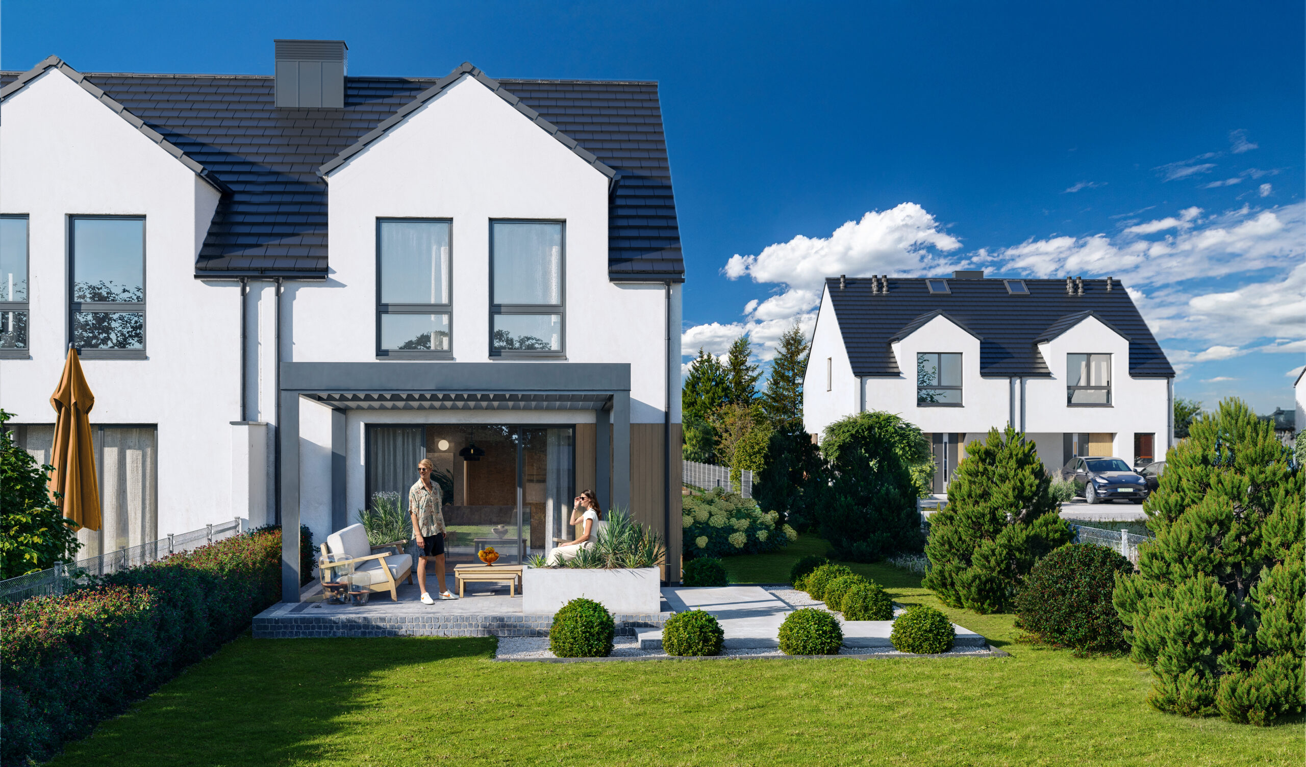 Każdy lokal posiada własny ogród i przestronny taras – idealne miejsce do odpoczynku na świeżym powietrzu.