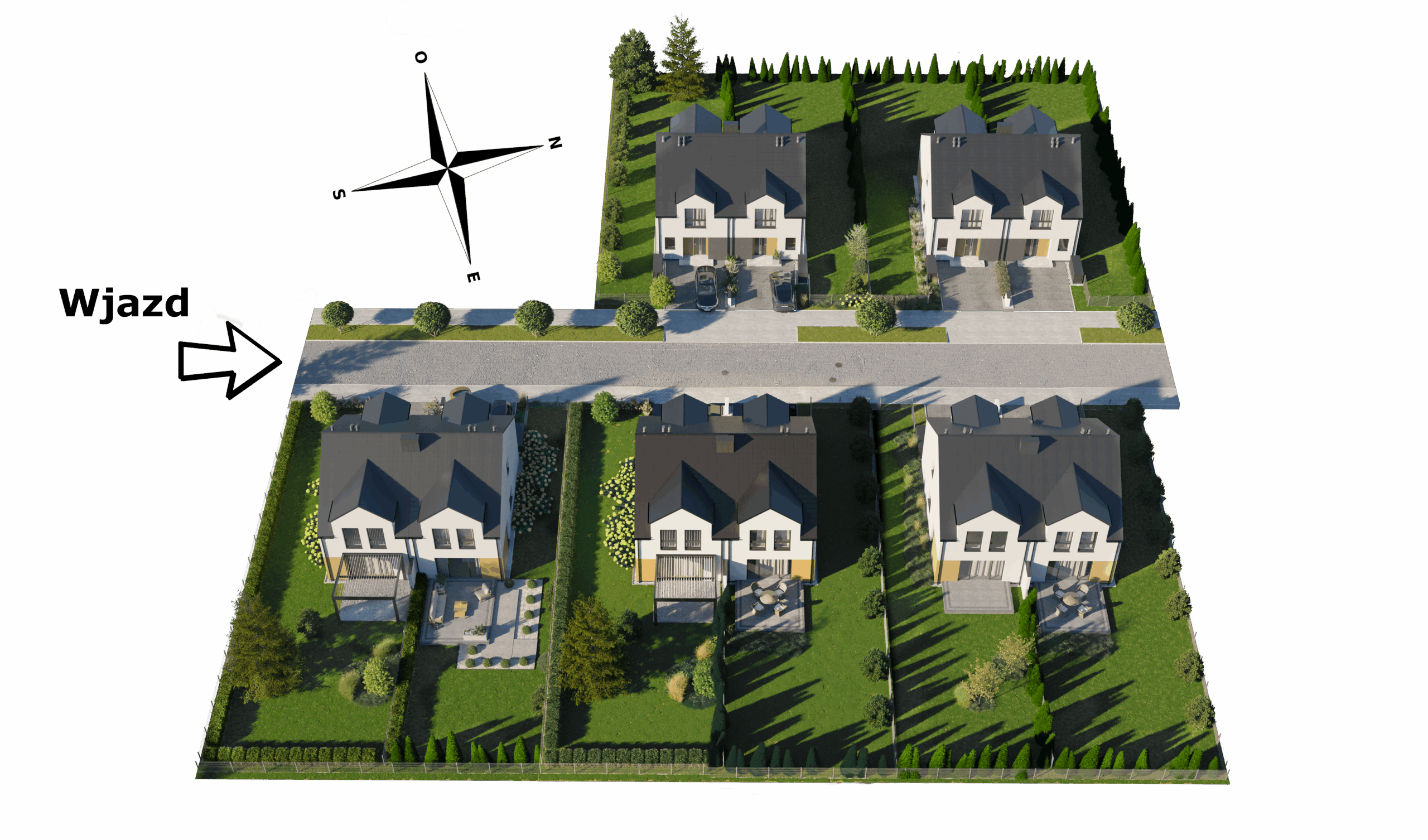 Kameralne osiedle składające się z pięciu domów w zabudowie bliźniaczej, oferujących łącznie osiem komfortowych lokali. Inwestycja została zaprojektowana z myślą o osobach ceniących sobie spokój i bliskość natury, a jednocześnie dogodny dostęp do miejskiej infrastruktury.